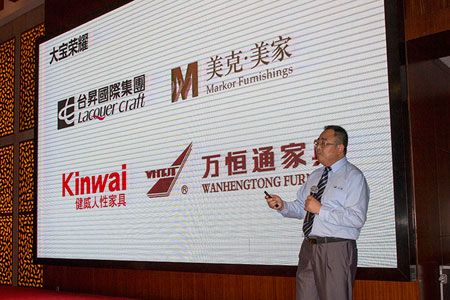 隨后大寶漆工程部培訓(xùn)中心校長黃文敏向大會(huì)作主題為“大寶漆智能涂裝運(yùn)營”的演講。黃校長在詳細(xì)介紹大寶漆智能涂裝測試線功能特點(diǎn)的同時(shí),重點(diǎn)結(jié)合大寶水性木器漆產(chǎn)品特點(diǎn)講述了產(chǎn)品與涂裝設(shè)備間的配合關(guān)系,兩者相輔相成將會(huì)為家具行業(yè)“油改水”之需求作出生產(chǎn)變革。此外,演講還針對水性家具漆普遍存在的木材漲筋、浮色、干燥慢等六大重點(diǎn)、難點(diǎn)問題,分別給出了可靠而實(shí)用的解決方案,受到家具廠老板的高度關(guān)注。