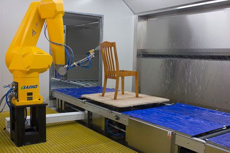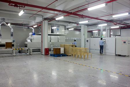 在國家與日俱增的環(huán)保政策要求之下,家具企業(yè)紛紛把“油改水”計(jì)劃提上了日程,眾所周知,油改水發(fā)展最大的瓶頸則在于水性涂料的干燥問題。有鑒于此,大寶漆特聯(lián)合中國科學(xué)院電子計(jì)算研究所,同時(shí)與設(shè)備供應(yīng)廠商合作,采用前瞻技術(shù),歷時(shí)近3年,經(jīng)過反復(fù)的溝通、協(xié)調(diào)及試驗(yàn),以解決水性家具漆自動(dòng)化生產(chǎn)所面臨的重要問題為突破,共同研發(fā)了擁有專利技術(shù)的全方位立體干燥設(shè)備系統(tǒng),并率先打造了我國涂料界首家大規(guī)模的智能化涂裝測試線。