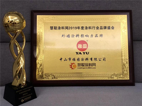 2019年6月22日,以“動能升級?聚力數(shù)字銳變”為主題的2019中國涂料高峰論壇在上海虹橋綠地鉑瑞酒店舉行。在本次“2019涂料行業(yè)品牌盛會”頒獎盛典上,雅圓涂料作為建筑涂料行業(yè)前沿品牌,榮獲“2019外墻涂料影響力品牌”,這也是雅圓連續(xù)六年獲此殊榮。