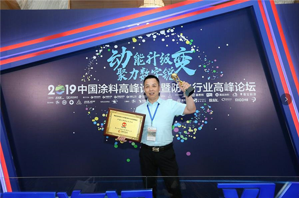 雅圓涂料總經(jīng)理楊帆上臺領(lǐng)獎(左三)