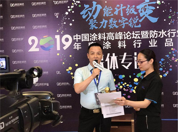 中山市雅圖涂料有限公司總經(jīng)理楊帆現(xiàn)場接受采訪