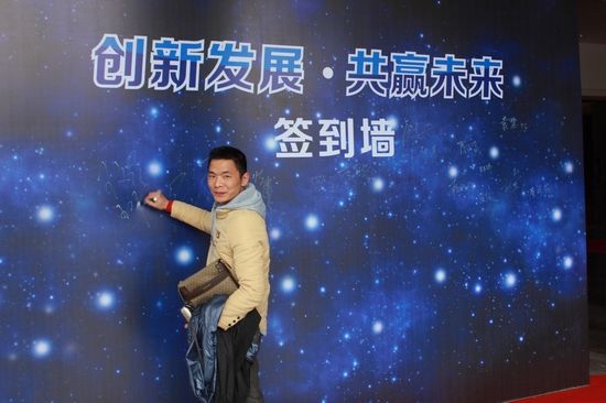 根據巴德士藝術涂料 “木蘭星空”產品設計,深藍色夢幻夜空和璀璨星光效果驚艷。客戶紛紛在簽到墻上留下簽名并合影留念!