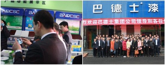 湘潭地區巴德士漆旗艦店位置好、面積大、環境整潔優雅、產品及設施齊全,眾人紛紛拿出手機拍照,記錄下值得學習的地方。