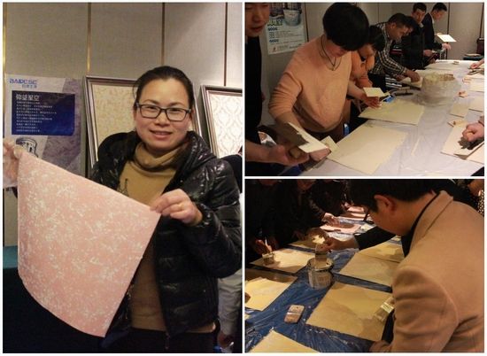 推廣會的實操環節,客戶紛紛動手參與其中。巴德士藝術漆施工如此簡單,分分鐘變藝術大師。