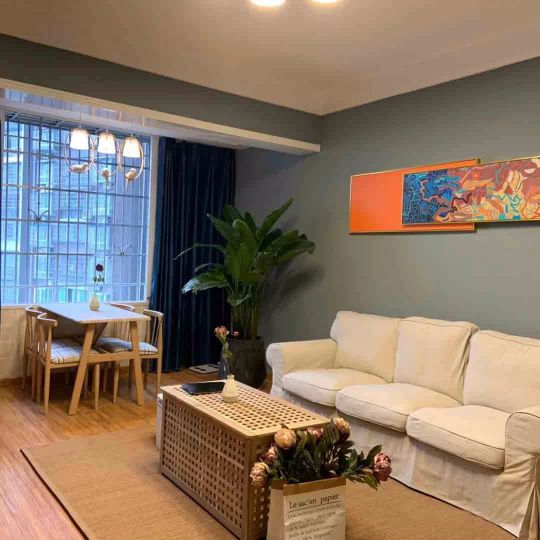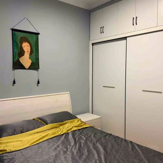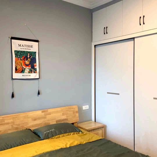 張先生選了簡(jiǎn)約的北歐風(fēng)格,墻面直接涂刷了灰藍(lán)色的涂料,這種色調(diào)也是時(shí)下深受年輕人喜歡的;家具為白色原木色相搭,簡(jiǎn)潔大方。