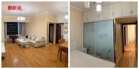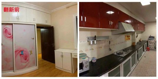 原來(lái)的裝修墻面刷的是米黃色的涂料,很多位置已經(jīng)開(kāi)裂、發(fā)霉、脫落,家具也有不同程度損傷。張先生本著節(jié)省成本效益最大化的考慮,水電、地面基本沒(méi)動(dòng),把墻面、櫥柜、家具等翻新一下。