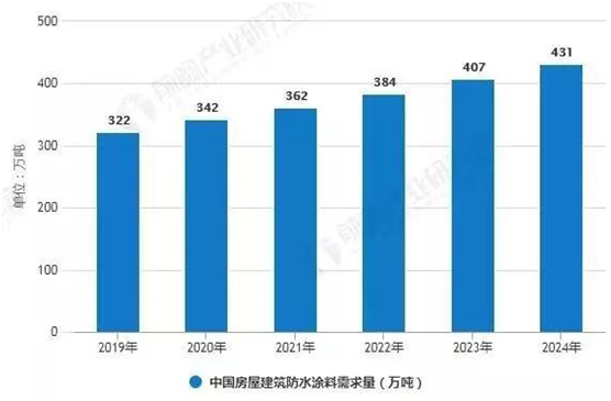 預計2024年中國房屋建筑防水涂料需求將會突破430萬噸。