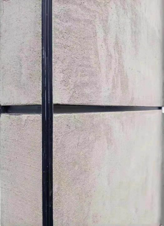 外墻粗底膩子及白膠施工:在水中緩慢加入粗底膩子和白膠,攪拌成均勻的漿料,墻面先用粗底膩子批刮一遍,待干燥后,進(jìn)行分格,在分隔條上打上免釘膠固定深槽材料(提示:基面不得有浮灰、油污其他污染物、其墻面的含水量應(yīng)小于10%。漿料應(yīng)即配即用,配制好的漿料需在4小時內(nèi)用完,不得二次加水)。