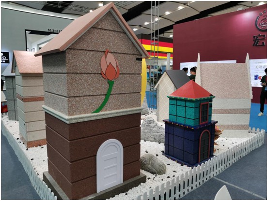 (以“花”為主題的潤(rùn)立仿石漆系列的沙盤(pán)模擬展品)