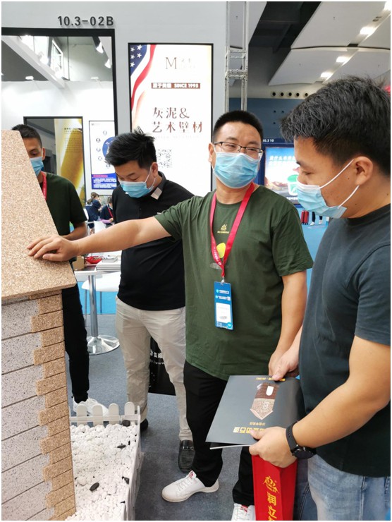 位于展館B區(qū)10.3-03展位的潤(rùn)立漆攜帶抗病毒水漆新發(fā)產(chǎn)品參展,并為潤(rùn)立仿石漆產(chǎn)品注入新的靈魂和新的詮釋。開(kāi)展首日,便憑借其出彩的展廳設(shè)計(jì)和產(chǎn)品涂裝效果,在“百舸爭(zhēng)流千帆競(jìng)”的會(huì)場(chǎng)中精彩亮相,大放異彩,受到業(yè)內(nèi)相關(guān)人士和權(quán)威媒體的高度關(guān)注,前來(lái)參觀(guān)、咨詢(xún)、采訪(fǎng)、洽談的人士絡(luò)繹不絕,展廳現(xiàn)場(chǎng)人來(lái)人往,熱火朝天。