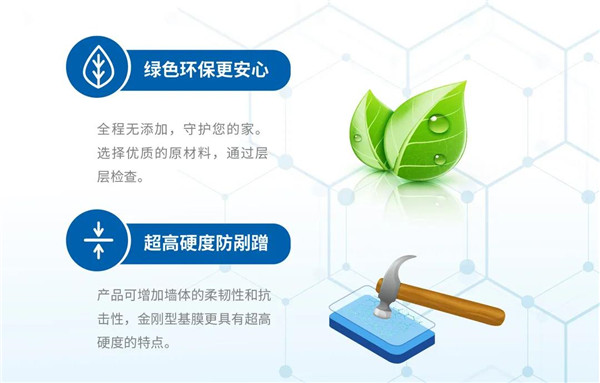 全程無添加,守護(hù)您的家。經(jīng)典品牌,選擇優(yōu)質(zhì)的原材料,通過層層檢查,研發(fā)出護(hù)墻專家防水基膜這款綠色環(huán)保新品。