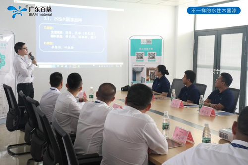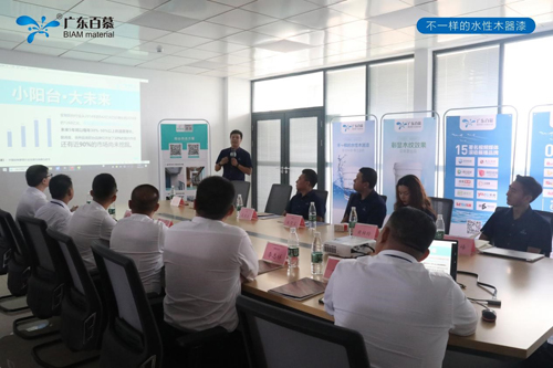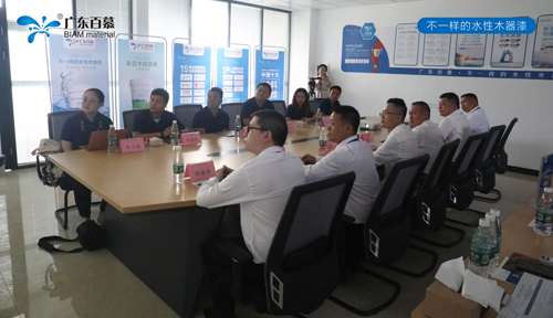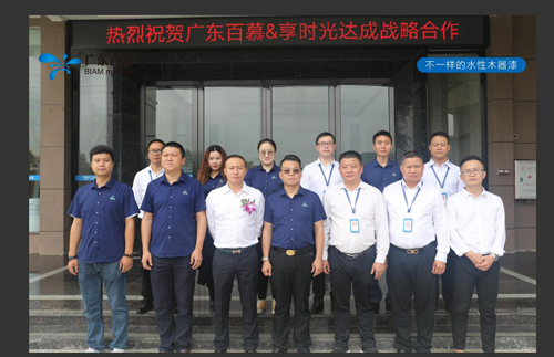 會議結束后,在廣東百慕技術專家的帶領下,享時光團隊近距離地參觀了百慕總部生產基地,實地考察了解水性涂料的工藝和質控流程。整潔有序的生產區間、涂裝效果逼真靚麗的樣品、技術團隊的專業解說,都讓享時光團隊深為認可,對合作前景充滿樂觀和期盼。