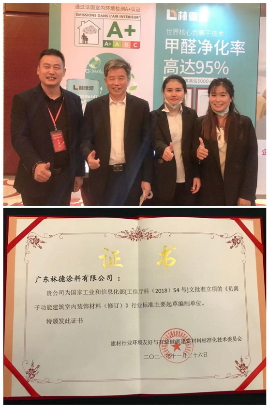 近日,林德漆傳來利好消息:熱烈慶祝林德漆產品負離子森呼吸凈味醛凈水漆榮獲由廣東省室內環境衛生行業協會頒發的“科技創新產品獎”!林德漆企業榮獲“健康建材(涂裝類)示范單位”、“《負離子功能建筑室內裝修材料(修訂)》行業標準主要起草編制單位”。