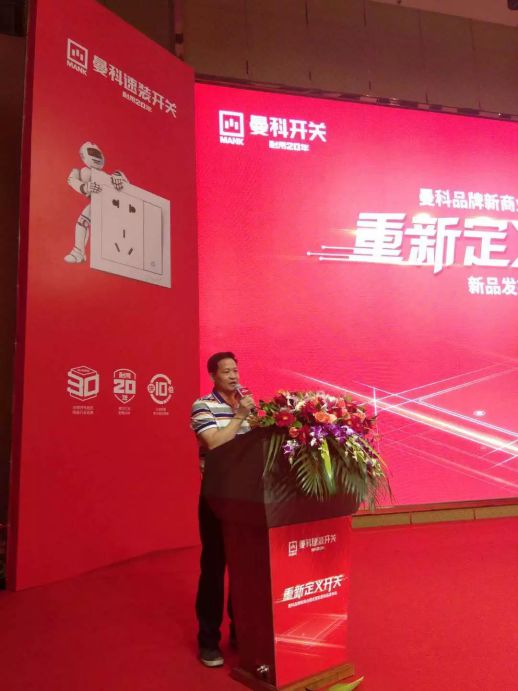會議上,廣東錦力電器有限公司總經理伍錦生首先致辭,伍董表示:30多年來,曼科堅持共贏、共創、共享的理念,與曼科開關共同推進新商業模式和品牌戰略升級,共享升級帶來的市場紅利。