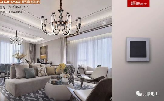 開關(guān)搭配方案:平板水晶燈的華麗,需要搭配奢華的拉絲鋁+黑色幾何開關(guān),開關(guān)融入現(xiàn)代感中帶有奢華的風(fēng)格,與水晶燈想呼應(yīng),從而體現(xiàn)了主人的富有與品位。