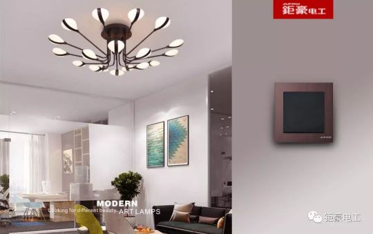 開關(guān)搭配:藝術(shù)燈適合搭配同樣具有現(xiàn)代藝術(shù)性的鋁板拉絲面栗銅棕開關(guān),線條流暢簡單,色彩對比度明顯,這樣能增加整體裝修風(fēng)格的藝術(shù)感,也能為整個空間達到錦上添花的效果,能一下抓住人們的眼球。