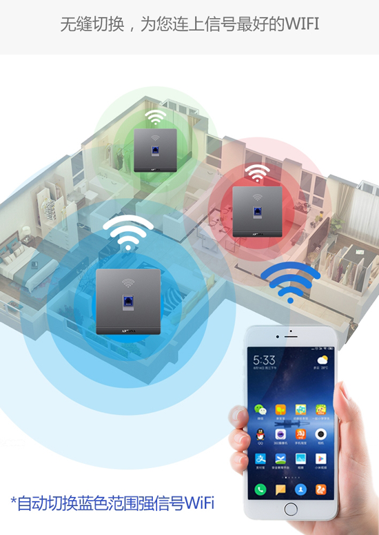 (3)信號(hào)好:室內(nèi)多點(diǎn)安裝,無(wú)論在哪個(gè)角落,都能自動(dòng)切換到信號(hào)最好的WiFi連接,不怕斷開網(wǎng)絡(luò)!