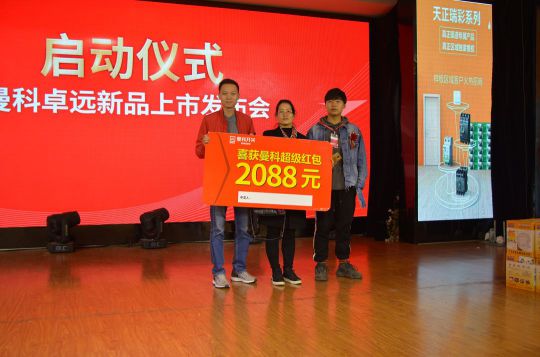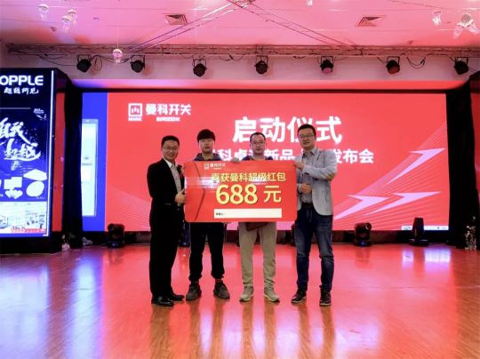 在此次發布會上,曼科開關新推出的“曼科超級紅包刮刮卡”福利回饋活動將會上氣氛推到了高潮,現場客戶們紛紛投入到刮卡領紅包,贏取幸運紅包大獎的熱烈氛圍之中,隨著紅包大獎幸運兒不斷出現,現場氣氛一度被推向高潮。