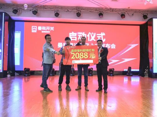 11月18日下午,曼科開關卓遠系列新品發布會在廣西桂林漓江假日酒店盛大召開。會上,曼科開關產品、終端展示、推廣方式實現全新升級,卓遠系列首次亮相驚艷全場,嶄新的曼科品牌終端展示柜令人眼前一亮,而曼科開關新推出的“超級紅包刮刮卡”更是將現場氣氛推到了最高點。選擇曼科,未來可期!
