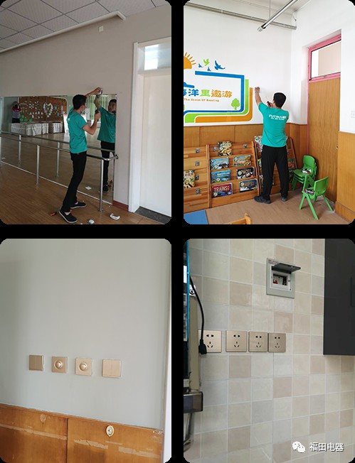 7月上旬,福田電工師傅為河北省直機關第九幼兒園全面更換為福田A68抑菌開關/插座產品。