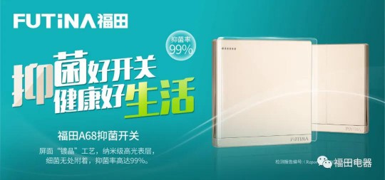 福田電器A68抑菌開關/插座,于2019年8月上市,因其采用“屏面”鍍晶工藝,形成納米級高光表層,抑菌率高達99%,特別適合醫院、學校、等公共場所,以及追求健康生活品質的家庭使用。