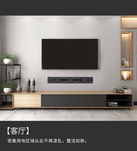 客廳的作為主要的活動場所,有很高的用電需求,因此在電視柜上通常會安裝設計多個插座,同時考慮到電器種類繁多,插座的排布會顯得雜亂無章,霸占空間又嚴重破壞美感,任誰見了都要皺眉頭。