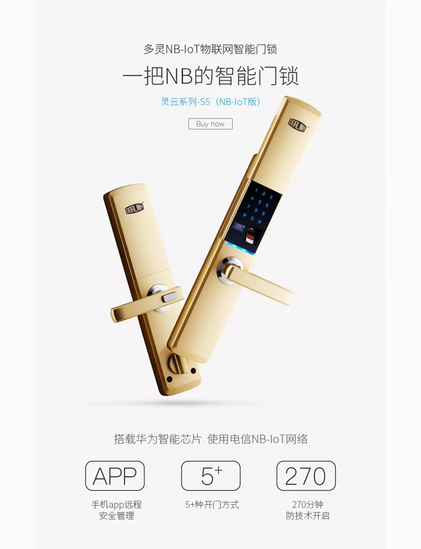多靈,以物聯網智能鎖為核心的國家級高新科技企業,國內首家通過蘋果MFi認證的智能鎖品牌,同時與華為、電信深度合作,聯合發布第一款NB-IoT物聯網鎖,多靈已與公安、保安等系統對接,廣泛應用在公寓、酒店、辦公樓等領域。作為資產、出入、治安管理的關鍵點,每日高頻率使用,它所承載的數據價值,會為社會、物聯網生態圈,企業自身帶來巨大的價值。
