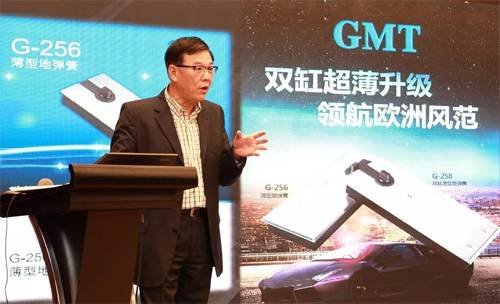 智能鎖驚艷登場后,中盛集團首席顧問韓起平先生與GMT供應鏈總監許國棟先生先后上臺,為大家帶來GMT傳統優勢地彈簧與門夾的全新產品:G-258薄型雙缸歐規地彈簧、G-256薄型歐規地彈簧、及BL系列波浪門夾。作為國內玻璃門控五金行業的領先品牌,GMT當然也會將全新研發成果與升級體驗,毫無保留地呈現給廣大終端用戶。