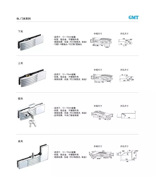 波浪門夾是本次新品發布的又一亮點。BL系列高級門夾采用加厚夾板,使得鉚螺母鏈接更加固定,上夾與下夾均以鋁合金與不銹鋼材質制成,具有高度的安全性和防護性。