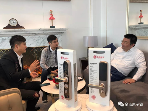 在三個小時的會晤中,雷先鳴董事長向江總介紹了金點原子品牌的發(fā)展歷程和公司業(yè)務(wù)現(xiàn)狀,兩位優(yōu)秀的企業(yè)家就目前國內(nèi)智能鎖市場狀況、發(fā)展前景,以及如何建立品牌認(rèn)知,突出特性和定位消費群體,怎樣實施品牌推廣等幾方面的問題進(jìn)行了深度的交流和思維碰撞。現(xiàn)場氣氛,如沐春風(fēng),充滿活力。