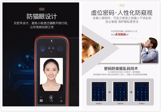 Hobere-H9擁有防貓眼設計、虛位密碼設計、自動上鎖技術、防盜抓拍技術、應急旋鈕機械式開門技術等眾多創新型、先進化設計技術,全方位守護用戶的家居安全,拒絕給“不法分子”留下一絲一毫入屋盜竊的機會。