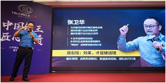 本次會議,三環鎖業為使現場經銷商家人們更加直白地了解品牌渠道升級的規劃,特意邀請到盛世經典傳媒集團總經理張衛華先生為大家實戰演示終端落地應用的方法。