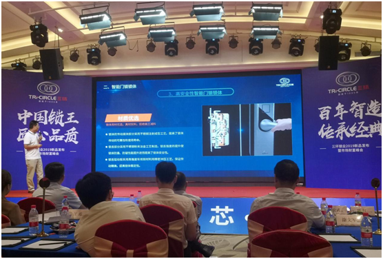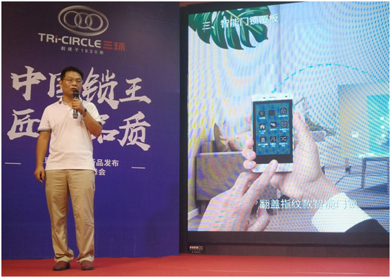 在接下來的環節中,三環鎖業產品部經理楊先明先生介紹了下半年上市新品,滿足智能化、品質升級的智能門鎖新品將于7月上市,一系列更高顏值、更加智能、更好體驗的新品智能鎖,必將推動門鎖行業跨入新時代!