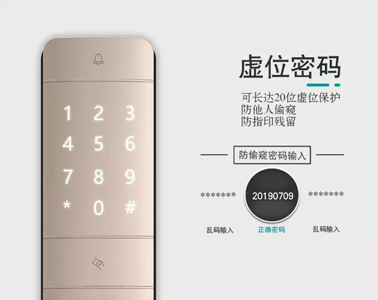 小西家門鎖有長達20位的虛位密碼,只要密碼對,前后輸入任意數字都能開門,水滴攝像頭也沒法偷窺家里的密碼。