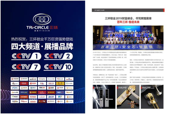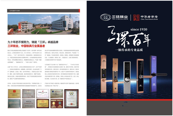 2019年9月,中國知名時政雜志《環(huán)球人物》對百年品牌“三環(huán)鎖業(yè)”進行了專題報道。作為“中國十大鎖具品牌”和“中國十大智能鎖品牌”,三環(huán)鎖業(yè)憑借核心技術、卓越產(chǎn)品、出色口碑和智啟未來之理念,引起了《環(huán)球人物》采編部的青睞。