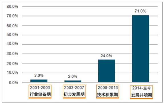 (中國(guó)智能鎖不同階段品牌數(shù)量增長(zhǎng)率)