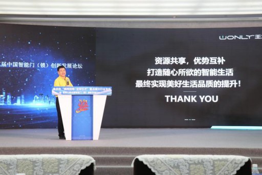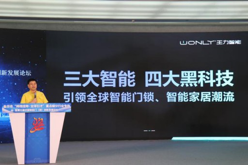浙江省政府、金華市、永康市有關領導以及行業(yè)協(xié)會、領軍人才、重點企業(yè)、專業(yè)機構(gòu)專家、企業(yè)家參會。王力董事長王躍斌應邀出席會議,并發(fā)表《三大智能、四大黑科技,引領全球智能門鎖、智能家居潮流》主題演講。