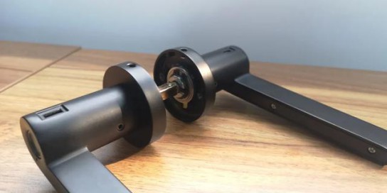 ND100的內(nèi)外執(zhí)手及其組件,均為黑色磨砂質(zhì)感,手感溫和,沒(méi)有冰冷的刺激感。指紋頭設(shè)置在執(zhí)手前部,手握?qǐng)?zhí)手即可指紋解鎖,指紋頭采用的是半導(dǎo)體指紋傳感器,真正做到流暢開(kāi)啟。