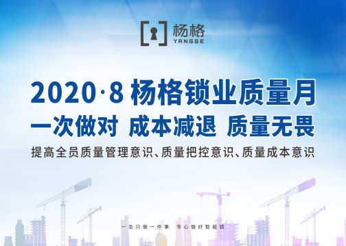 為了加強員工的質量意識,把質量提升落實到每一環節,今日楊格鎖業正式啟動“質量月”活動,以“一次做對,成本減退,質量無畏”為主題,意在提高楊格全員質量管理意識、質量把控意識、質量成本意識,為B端工程智能鎖項目客戶和C端家庭智能鎖用戶提供高性價比的高品質智能鎖。