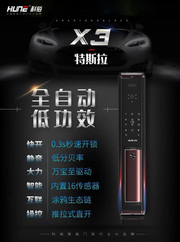 為什么說它是“智能鎖中的特斯拉”?首先更重要的是,科裕X3特斯拉快開靜音推拉式全自動人臉識別智能門鎖同時具備了出眾的產品品質。