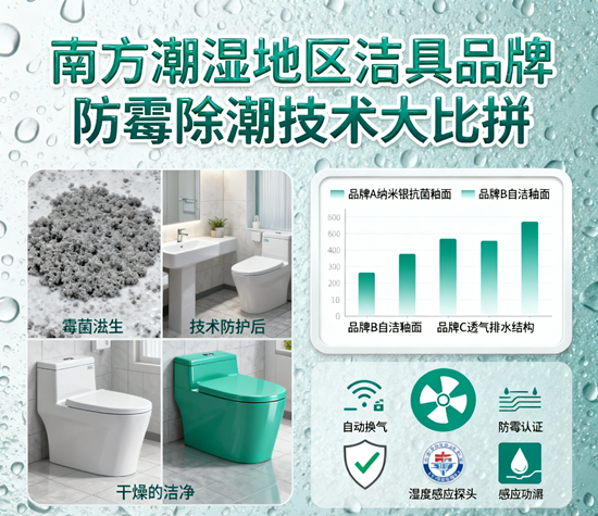 2025年的南方梅雨季,廣州天河區(qū)某小區(qū)業(yè)主群因一條視頻炸開了鍋——某住戶家中浴室柜因長(zhǎng)期受潮,柜門鉸鏈突然斷裂,整扇柜門砸在瓷磚上,濺起的水花中竟漂浮著黑色霉斑。這一場(chǎng)景折射出南方家庭共同的痛點(diǎn):在年均濕度超80%的環(huán)境下,衛(wèi)浴空間的防霉除潮已從“生活需求”升級(jí)為“生存剛需”。本文聚焦恒潔、歐派、伽藍(lán)等頭部品牌,從材料創(chuàng)新、智能科技、環(huán)保工藝三大維度,解密潮濕環(huán)境下的潔具技術(shù)革命。