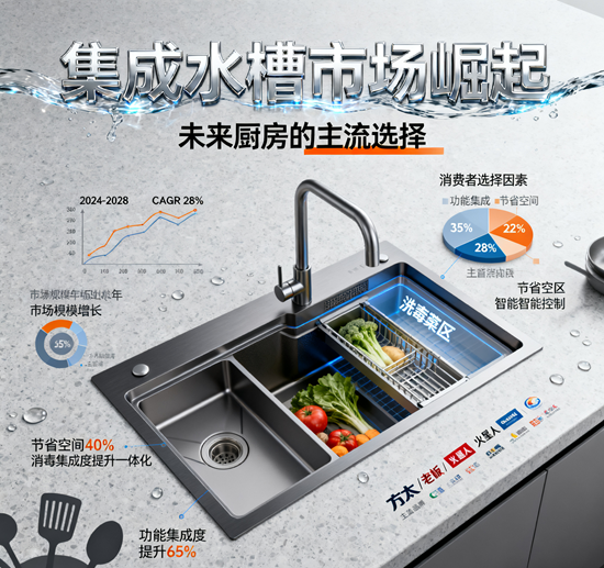 市場數據顯示,集成水槽的年增長率已超過25%,這一數字還在持續攀升。越來越多的消費者開始認識到集成水槽的價值,不再將廚房水槽視為簡單的功能部件,而是將其視為提升生活品質的重要元素。品牌商也在不斷創新,推出更多功能豐富、設計精美的集成水槽產品,如科大集成水槽系列,將洗碗機、水槽、收納柜等巧妙融合,創造出前所未有的廚房體驗。