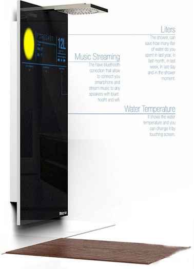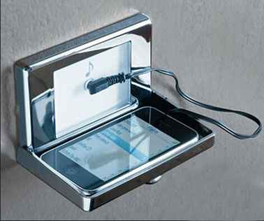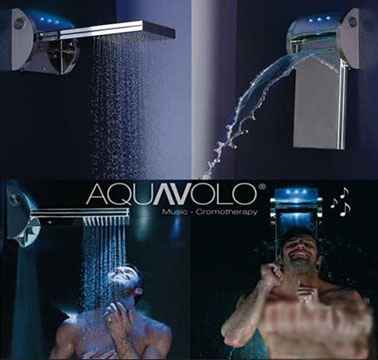 這款被稱為AquavoloMusic-Chromotherapy的花灑,是來自意大利Bossini的產品。其噴頭處配有音響系統和兩個揚聲器,不銹鋼材質,通過內部的線路連接到設備,使花灑和MP3或者iPhone/iPod連接,使淋浴達到最大程度的享受。