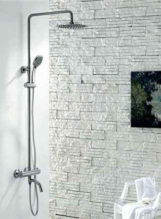 普樂美帕薩系列PSGHWF08-C0恒溫花灑采用38度恒溫控制,調節閥設計恒溫按鈕,為了避免高溫燙傷,調節閥如果要調節高于38度需要按下按鈕轉動調節閥才可以進行,大大的避免誤調水溫燙傷的發生。出水方式分為頂噴、手持、和水龍頭出水,其中龍頭出水設計大大的方便操作,只需要將龍頭往前方轉動即打開了水閥即可出水,用完水往左右任意一邊旋轉靠墻壁即可關閉,方便又實用。