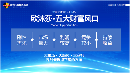 面對剛性需求、市場量大、利潤較高、競爭較小、持續收益這五大財富風口,歐沐莎總部非常有信心能帶領各位經銷商順風而行、乘勢而上,創造出更耀眼的市場成績。