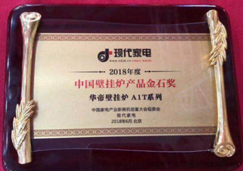 繼承了26年的專業燃燒經驗,華帝按照“專業化、高品質、高技術、高檔次”的要求制作了安全可靠的燃氣壁掛爐產品,成為消費者肯定的業界技術領先品牌。在2018年中國家電產業金石獎頒獎儀式上,華帝A1T壁掛爐獲得了中國壁掛爐產品金石獎,充分展現了行業和消費者對華帝品牌和華帝壁掛爐產品的高度肯定。