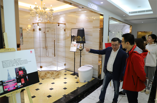在展廳里,玫瑰島核心團隊向上海紅星美凱龍住建領導一行詳細地介紹了玫瑰島全衛(wèi)定制六大產品矩陣之核心產品——安全+易潔二合一,人文與技術結合,自帶治愈焦慮的屬性,讓消費者洗得放心、洗得舒心、洗得省心的玫瑰島第四代淋浴房。