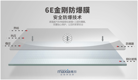 早在2007年,瑪莎淋浴房便開始選擇性加貼安全防爆膜。經(jīng)過(guò)多年的升級(jí)和改進(jìn),其生產(chǎn)技術(shù)日益成熟穩(wěn)定,具備了全面普及加貼安全防爆膜的硬性條件。因此,自2012年起,其投入重金打造熱貼膜的無(wú)塵車間和流水生產(chǎn)線,應(yīng)用于為全產(chǎn)品系列加貼安全防爆膜,將僅有的千分之三玻璃自爆率的可能性危害排除在外。