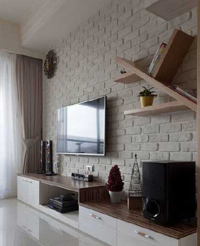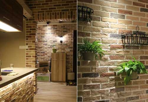 7. 原木風(fēng)格帶給人一種安靜雅致的氛圍,磚墻看似簡(jiǎn)陋,卻耐得住反復(fù)看,置物架在磚墻襯托下很搶眼。
