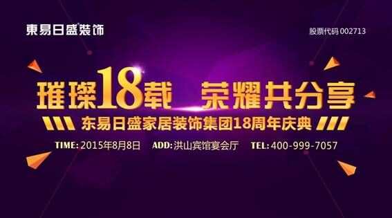 據(jù)悉,東易日盛家具裝飾集團于2015年8月8日在武漢洪山賓館宴會廳舉辦18周年慶。